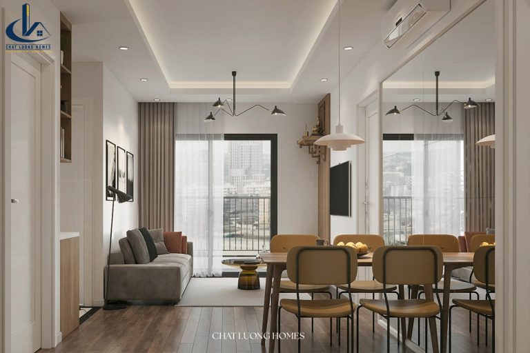 Thiết kế nội thất chung cư tập trung vào tối ưu hóa không gian sống với phong cách hiện đại, tối giản hoặc Scandinavian. Sử dụng các món đồ nội thất đa năng, màu sắc trung tính và ánh sáng tự nhiên giúp căn hộ trở nên thoáng đãng, tiện nghi và ấm cúng.